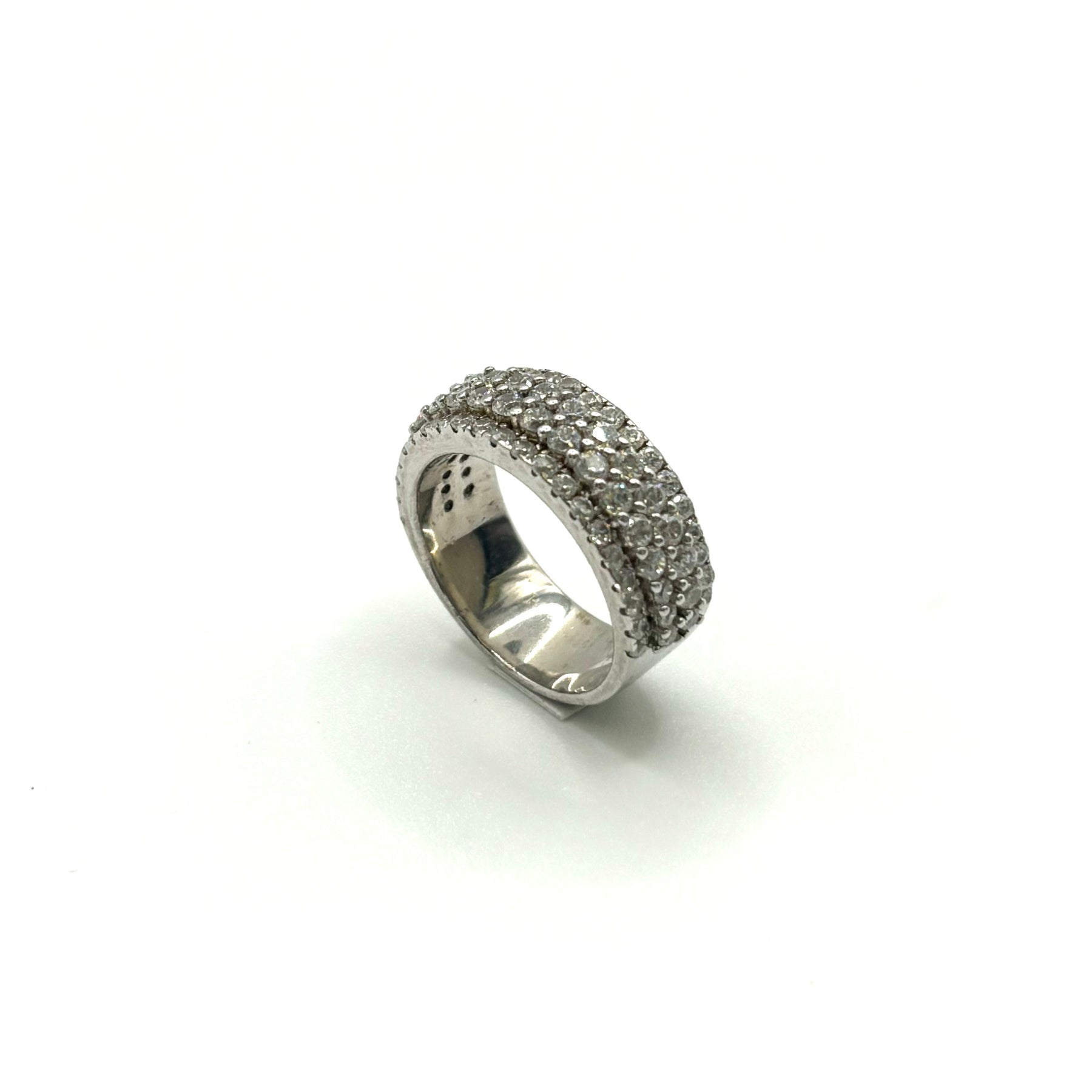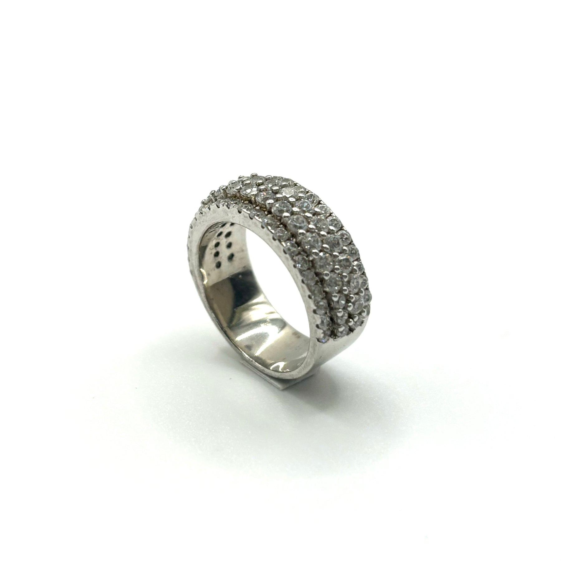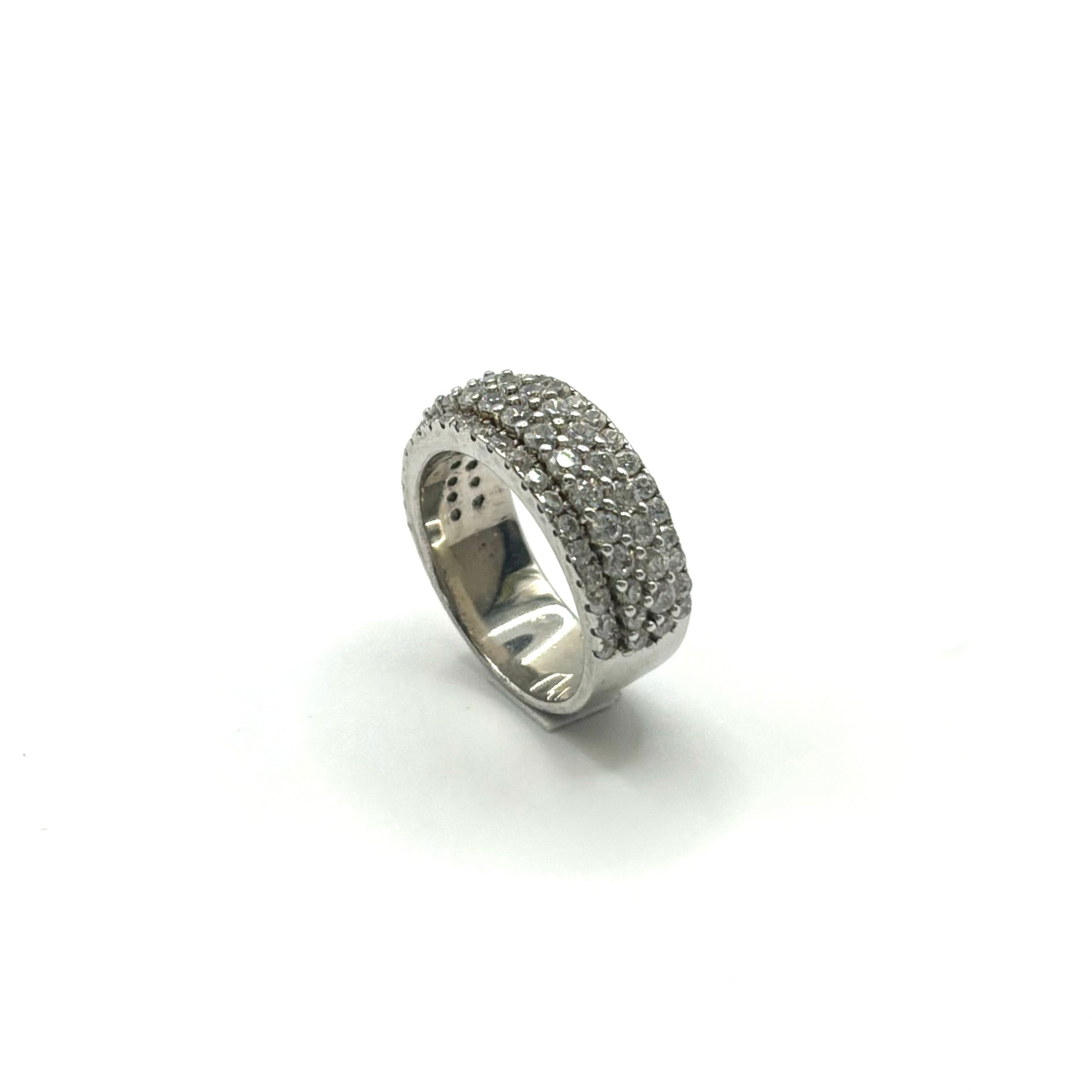 Half Iced 4 Row Princess Cuts Ring in White Gold