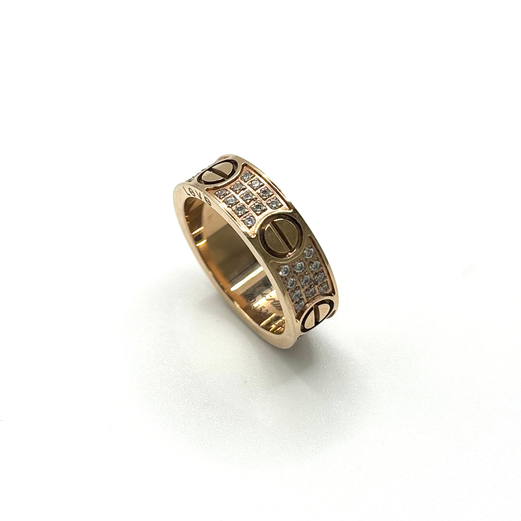 Iced Thick Band Ring in Rose Gold